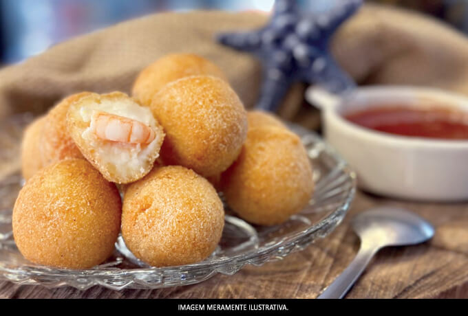 Este salgado delicioso é feito com camarão selecionado, massa tipo coxinha e empanado com a saborosa farinha da Litoral, além daquele tempero que só a gente tem!